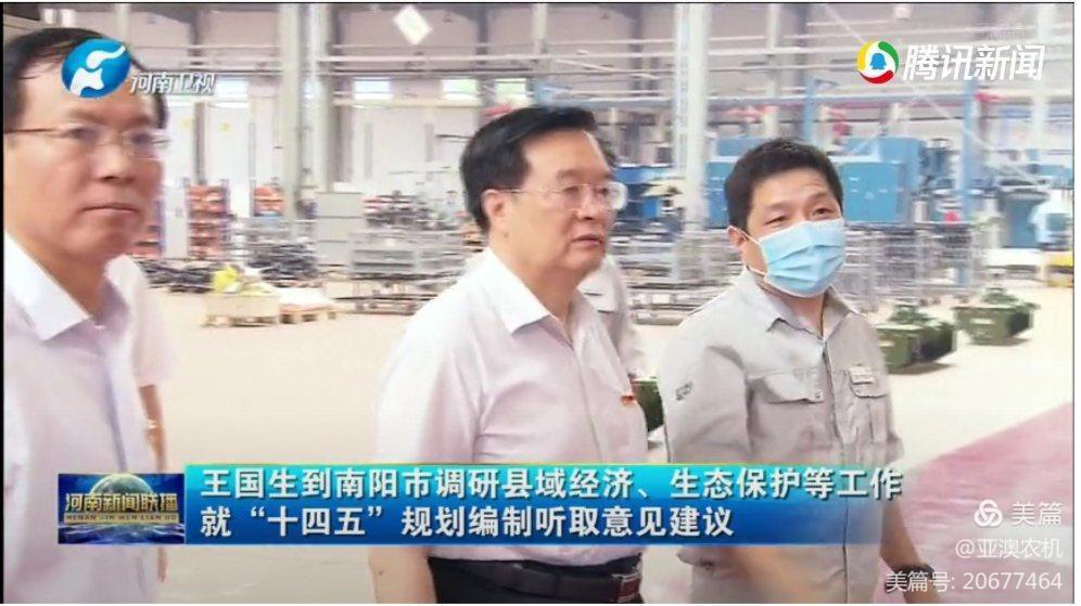 河南省委常委、省委秘書長穆為民陪同調(diào)研,亞澳南陽農(nóng)機(jī)總經(jīng)理史炳哲介紹相關(guān)情況!