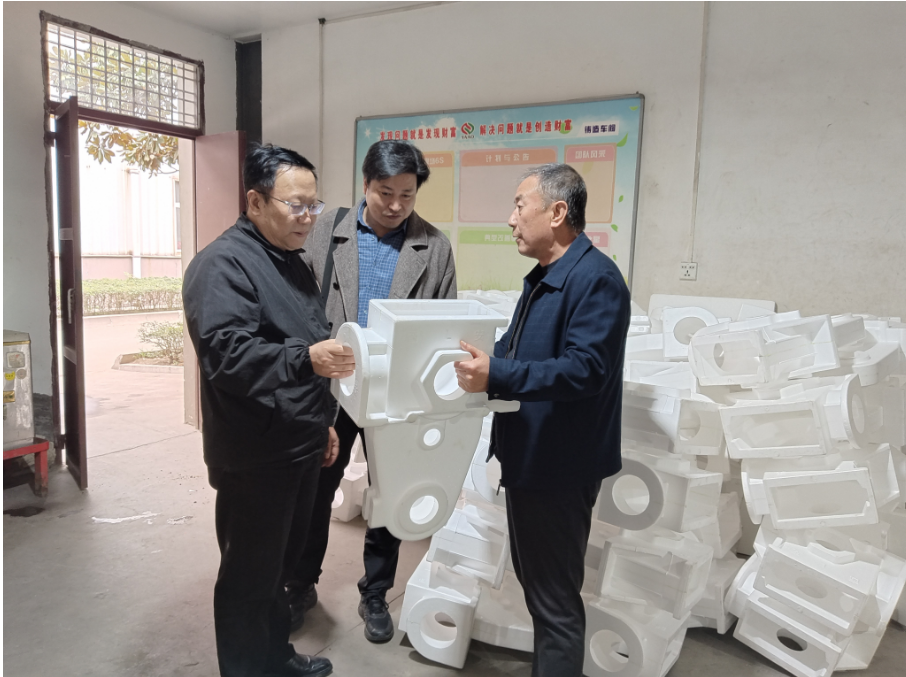 隨后領(lǐng)導(dǎo)一行深入車間一線生產(chǎn)現(xiàn)場(chǎng),對(duì)箱體消失模工藝鑄件產(chǎn)線的生產(chǎn)情況進(jìn)行考察。