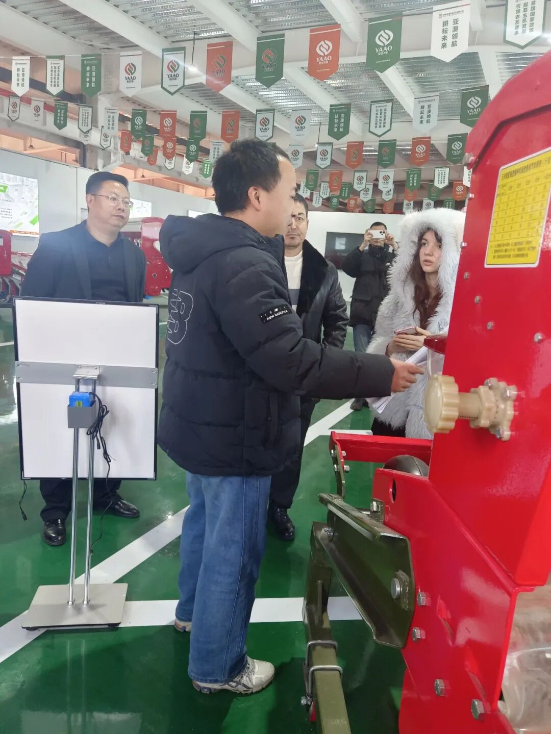 在產(chǎn)品展廳,亞澳農(nóng)機(jī)負(fù)責(zé)外貿(mào)的時馳經(jīng)理詳細(xì)介紹了公司的核心技術(shù)與產(chǎn)品優(yōu)勢。針對代表團(tuán)關(guān)注的氣吸式播種機(jī),重點(diǎn)演示了其核心優(yōu)勢:搭載進(jìn)口指夾式排種器,播種精度高達(dá)95%以上,遠(yuǎn)超國家標(biāo)準(zhǔn);創(chuàng)新采用梯堵裝置等專利技術(shù),可實(shí)現(xiàn)旋耕、整地、播種、施肥一體化作業(yè),適配干旱與黏濕等多種土壤環(huán)境,且能根據(jù)需求定制雙苗帶機(jī)型,完全契合烏茲別克斯坦的棉花種植需求?!拔覀兊漠a(chǎn)品在國內(nèi)小麥、玉米主產(chǎn)區(qū)可實(shí)現(xiàn)畝均增產(chǎn)10%-15%,作業(yè)成本降低30%以上,相信在烏茲別克斯坦也能發(fā)揮同樣的效益?!睍r馳經(jīng)理的介紹讓代表團(tuán)成員頻頻點(diǎn)頭。