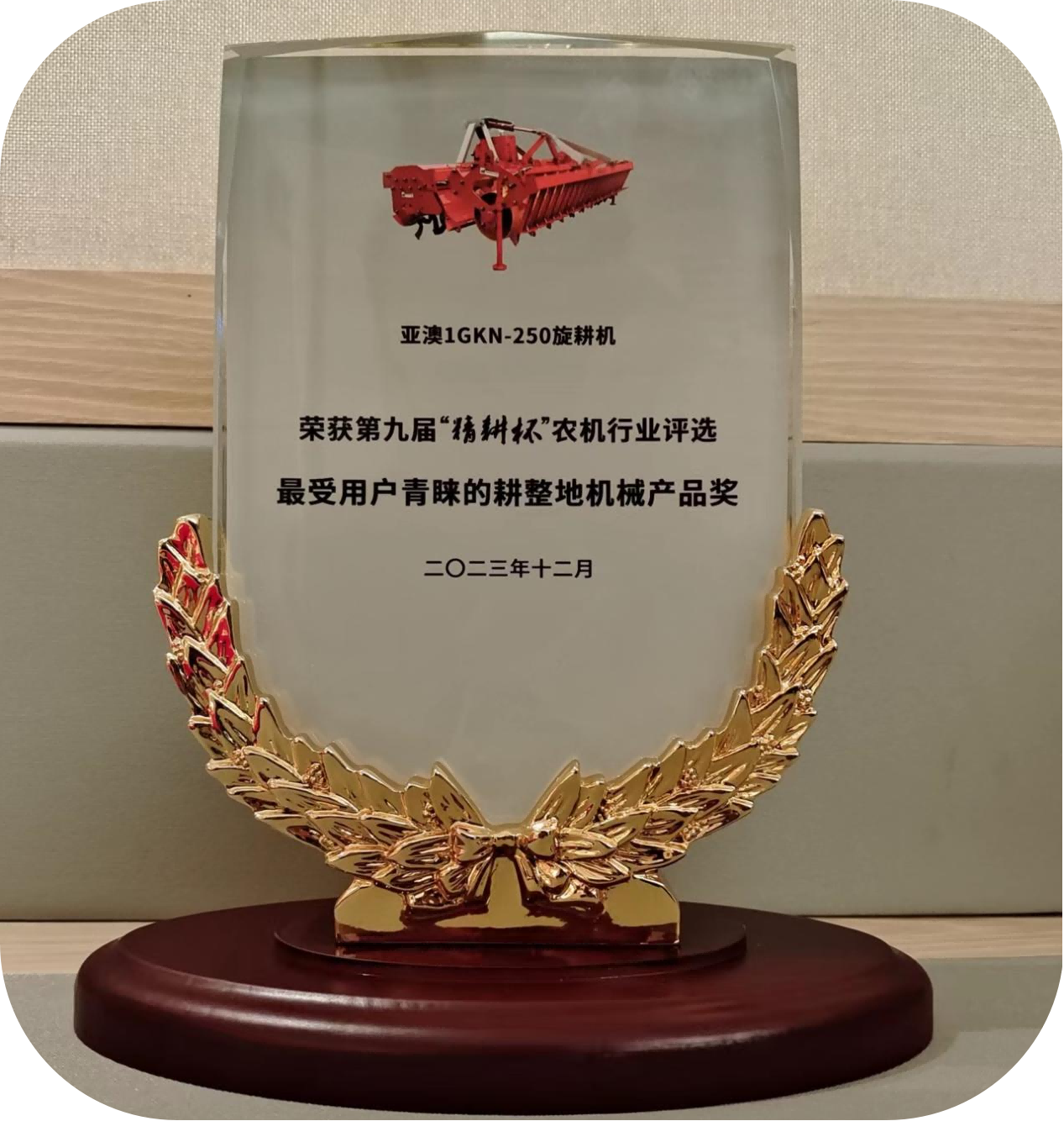 亞澳1GKN-250旋耕機(jī)榮獲最受用戶(hù)青睞的耕整地機(jī)械產(chǎn)品獎(jiǎng)